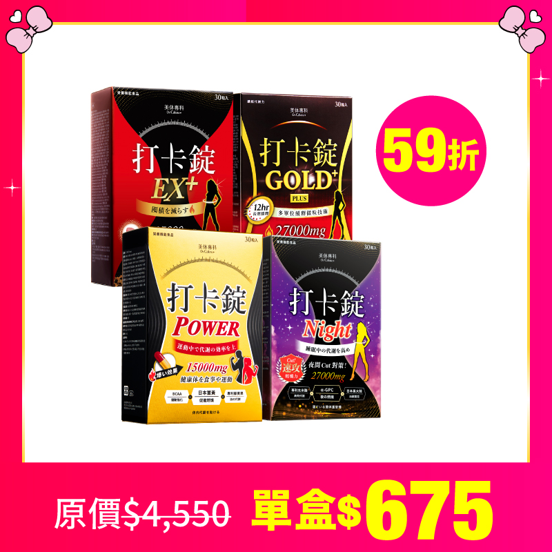 【美体專科】窈窕入門打卡錠4入組 共120顆(EX+*1、Gold+*1、Power*1、Night*1)