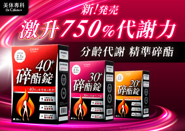 碎酯錠20+、碎酯錠30+、碎酯錠40+,一錠解決20、30、40歲的體態困擾。